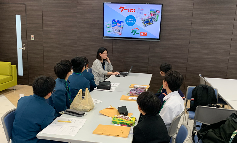 まずは、両校の生徒の皆さんが合流して、会社紹介からスタート!