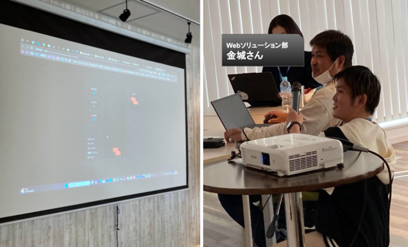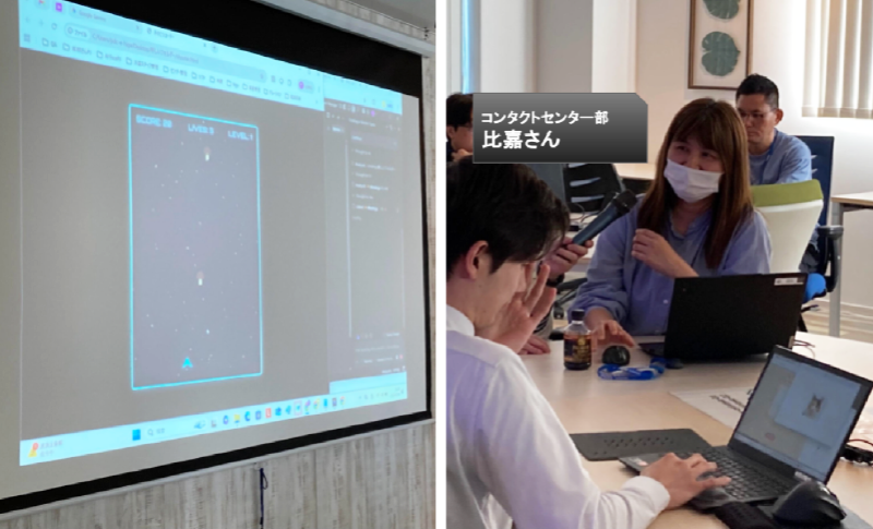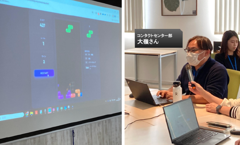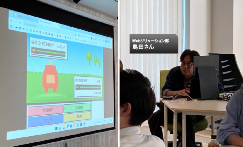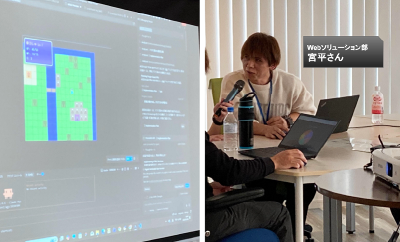 UIが見事に再現されたゲーム画面。「AIへの指示(プロンプト)が的確だと、こんなにも理想のものが早く得られるんだ!」という、日々の業務にも通じるAI活用の極意を共有してくれました。